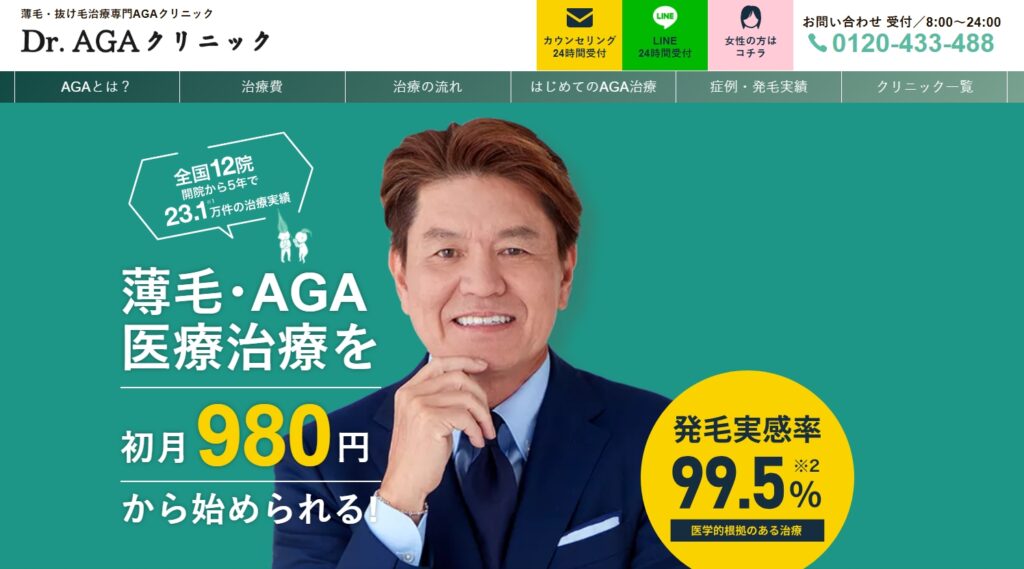 AGA治療は東京都に2院、神奈川県に1院展開しているAGA治療専門クリニックです。公式ホームページではAGAのセルフチェックが可能なので、薄毛や抜け毛が少し気になりだした方は試してみるとよいでしょう。AGAメディカルケアクリニックの治療は高い効果を発揮しており、実際に治療を受けた患者さんのうち、99.2%が髪の毛が増えたことを実感していて、3万人以上の治療実績があります。