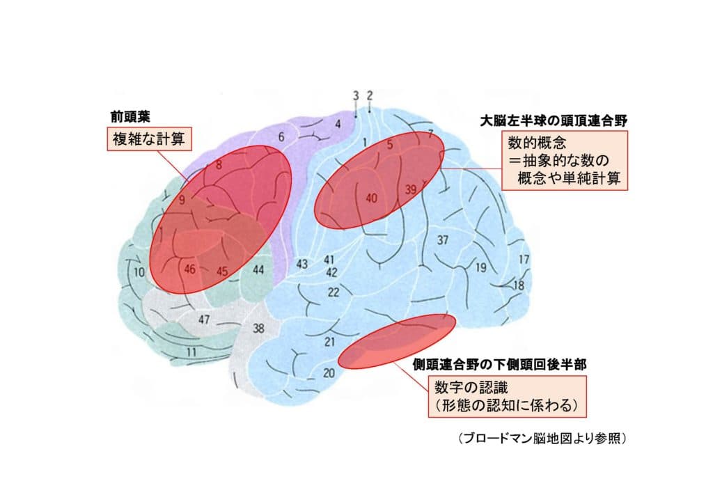 ディスカリキュリアは、ただ算数が苦手というわけではなく、脳の認知機能の発達特性と強く関連しています。最新の脳科学研究では、頭頂葉にある「頭頂間溝」や前頭前野など、数処理や数量の認識、数の概念形成を担う脳領域の構造や働きに特徴的な違いがあることが示されています。
