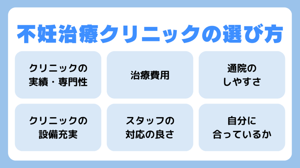 不妊治療を安心して続けるためには、自分に合ったクリニック選びが欠かせません。ここでは、治療を受けるうえで重視すべき6つの視点を紹介します。