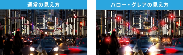 ICL手術のデメリットとして多く指摘されるのが、術後に起こる夜間のハロー・グレア現象です。具体的には、夜間に車のヘッドライトや街灯など強い光源を見たとき、光がにじんで輪のように広がって見える「ハロー」や、まぶしさが増して視界に影響を与える「グレア」と呼ばれる症状が現れることがあります。