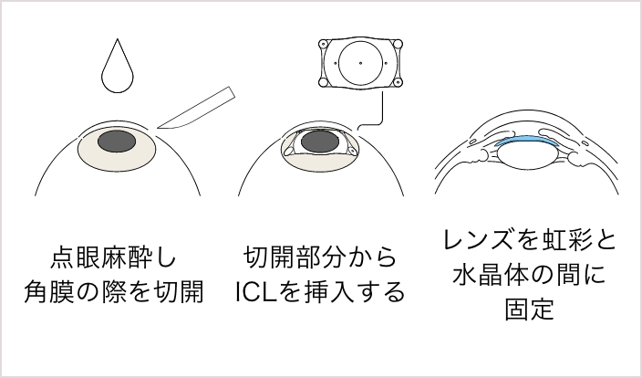 レーシックと同様にスピーディーですが、角膜を削らないICLは眼への侵襲が小さく、術後の回復も比較的早い傾向があります。