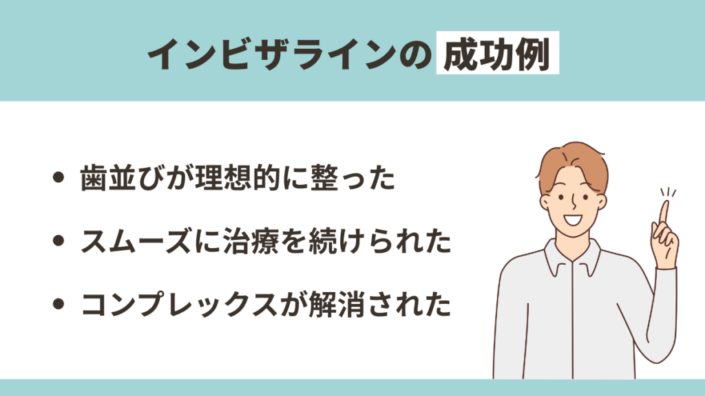 インビザラインは後悔の声もある一方で、多くの成功例も報告されています。目立たず快適に治療を続けられ、理想的な歯並びを実現した人も少なくありません。ここでは代表的な成功体験を紹介します。