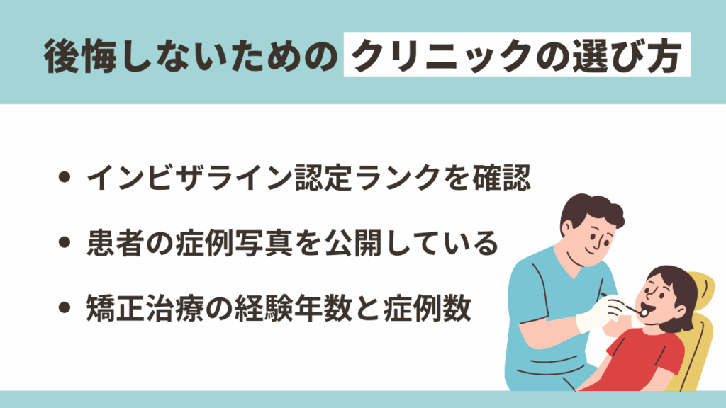 その際には、インビザラインの公式サイトで認定ランクを確認したり、クリニックのホームページで症例数や治療経験年数をチェックするのが有効です。
