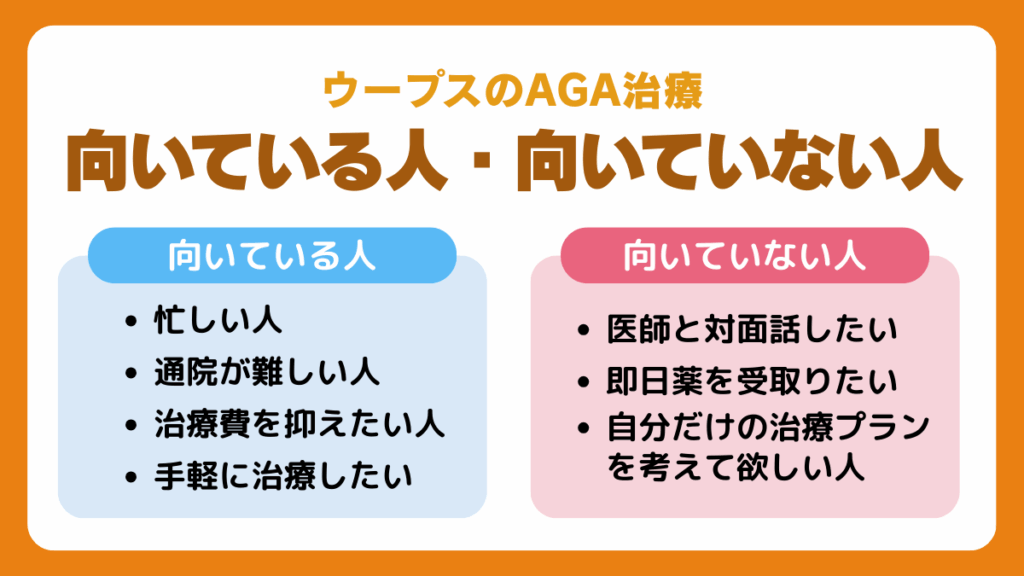 ウープス(Ooops)のAGA治療が向いている人・向いていない人の特徴