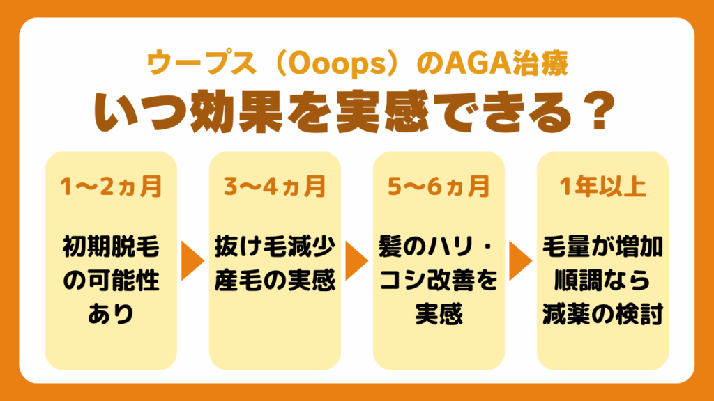 ウープス(Ooops)でのAGA治療の効果を実感できるまでどのくらいかかる?