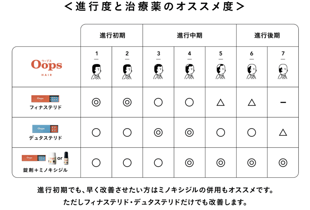 おすすめな人 | 進行が進んでいる方、フィナステリドで効果が薄かった方 |