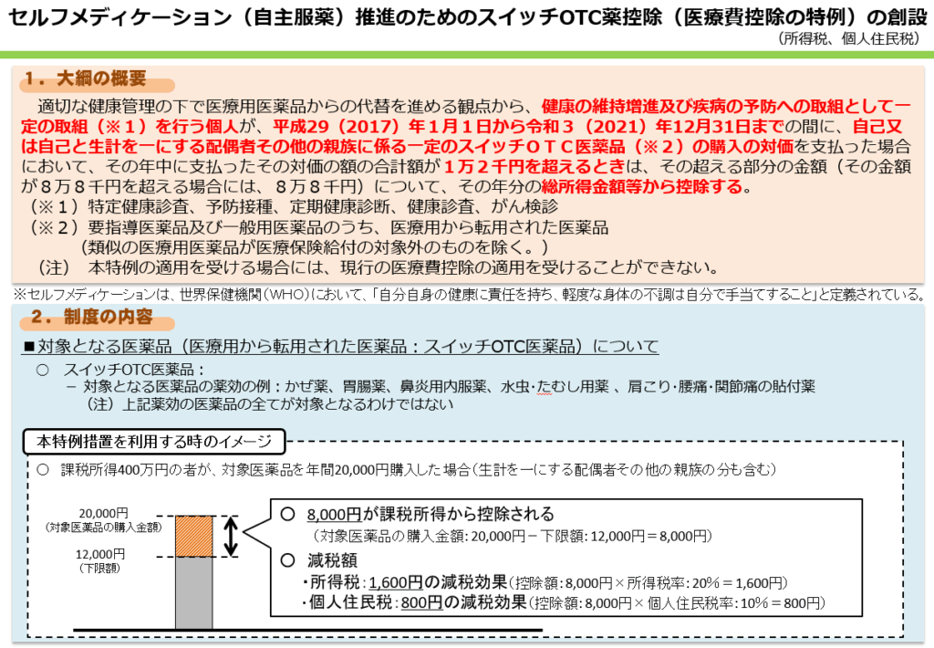 2017年1月に始まり、医療費控除とは別の選択肢として登場しました。